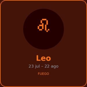 Leo es el quinto signo del zodiaco, el rey de la selva astral. Regido por el Sol, fuente de toda luz y vida, los Leo irradian carisma, generosidad y una presencia que llena cualquier espacio. Son creativos, leales y poseen una dignidad natural que inspira admiración.
